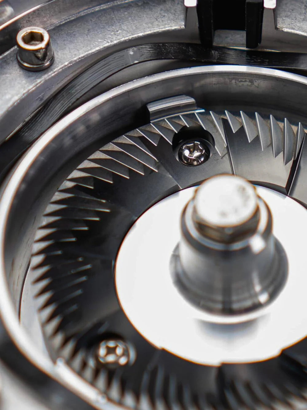 - 83mm Flat Burrs: Professional-grade, Italian-made flat burrs, with Diamond-Like-Carbon (DLC) coating, for high grind efficiency and less heat generated