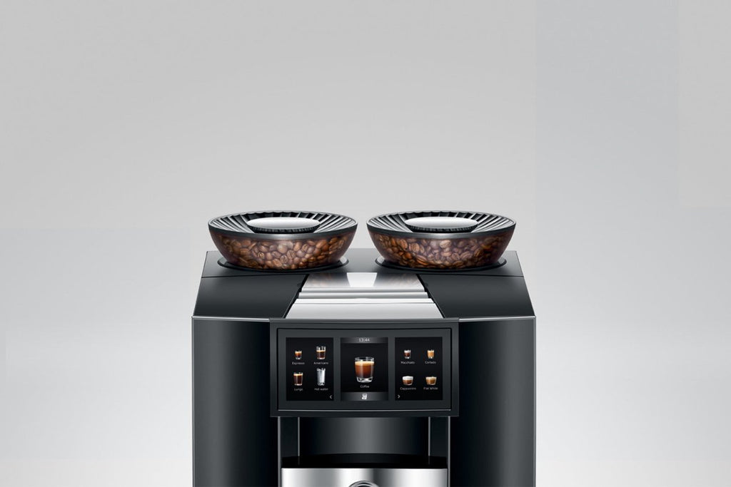 For maximum professionalism, the GIGA 10 features not just one but two high-performance grinders made of a long-lasting, high-quality ceramic material. Two bean containers with an elegant turbine look are each connected to a separate grinder, allowing you to choose the ideal type of coffee or the optimum blend for every cup. For example, you might choose a more intense, dark roasting to make an aromatic espresso and a medium roasting for a mild lungo or coffee with milk.