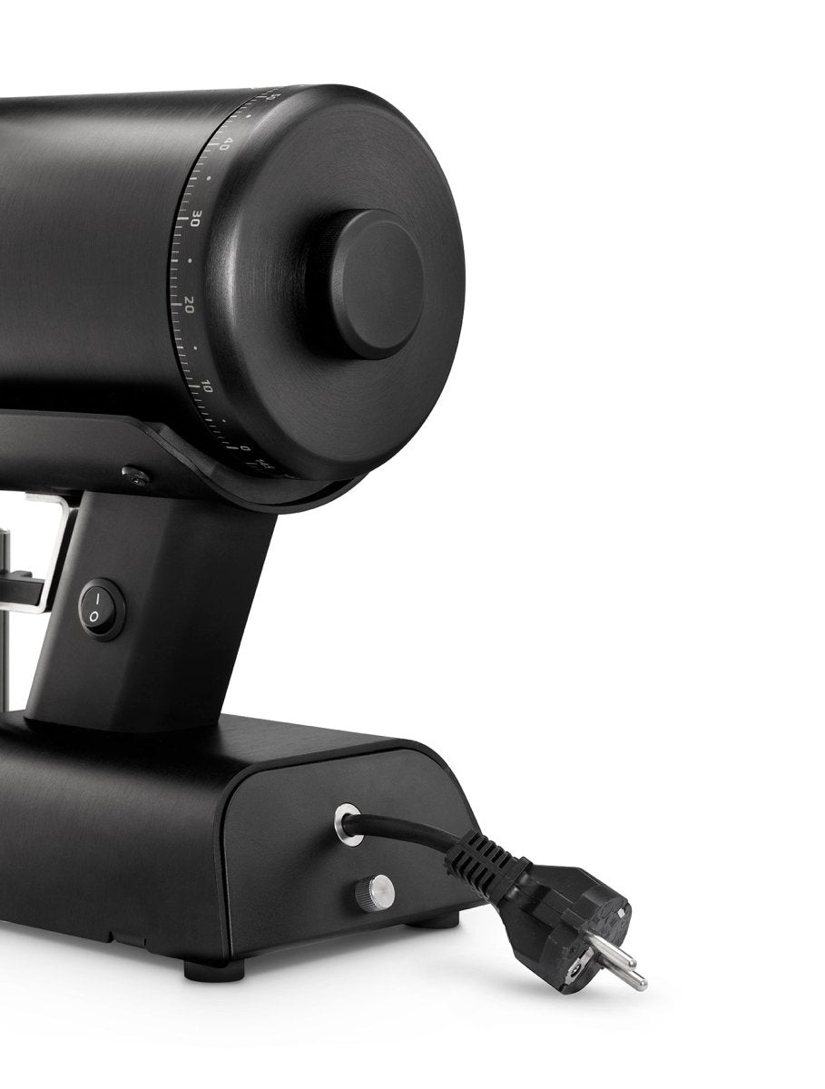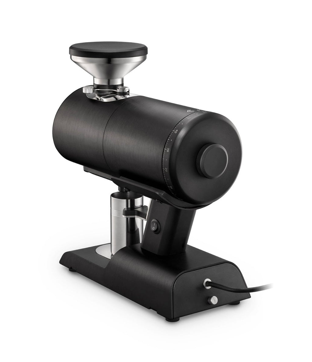 The grinder's practical features enhance the daily workflow - a magnetic 58mm dosing cup, an integrated dose finisher that collects residual grounds, and tool-free access to the grinding chamber for maintenance, all while preserving your grind settings. The robust 400W motor operates at an optimal 1400-1600 RPM, maintaining consistent performance while keeping operating temperatures stable.