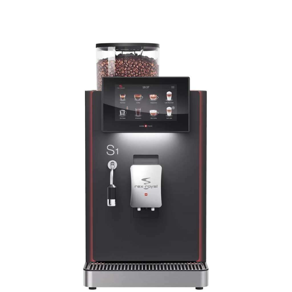 The Rex-Royal S1 is a high-quality, compact, fully automatic coffee machine for professional applications. It delivers top-notch beverage creations and is ideal for offices and co-working spaces. The S1 features a robust and durable metal brewing unit.