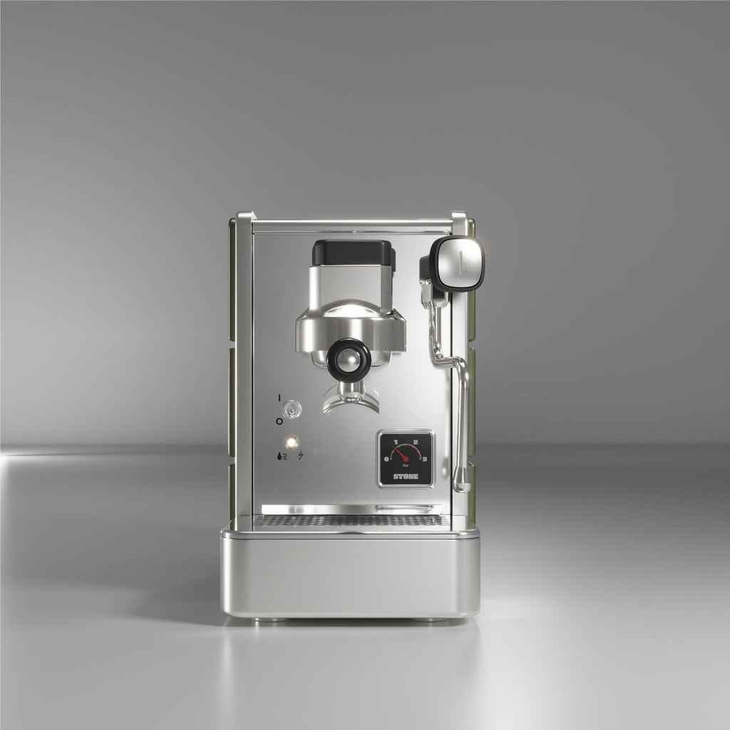 Stone is attacking the espresso machine market with mind-blowing features. With its compact shape, it is designed for people who want to save counter space in their kitchen. Its small size remains packed with performance. It attaches to a 58mm portafilter, the barista standard (this is the measure we use at our coffee shop). It is also the machine with one boiler and one heating unit with one of the smallest volumes in our entire collection.