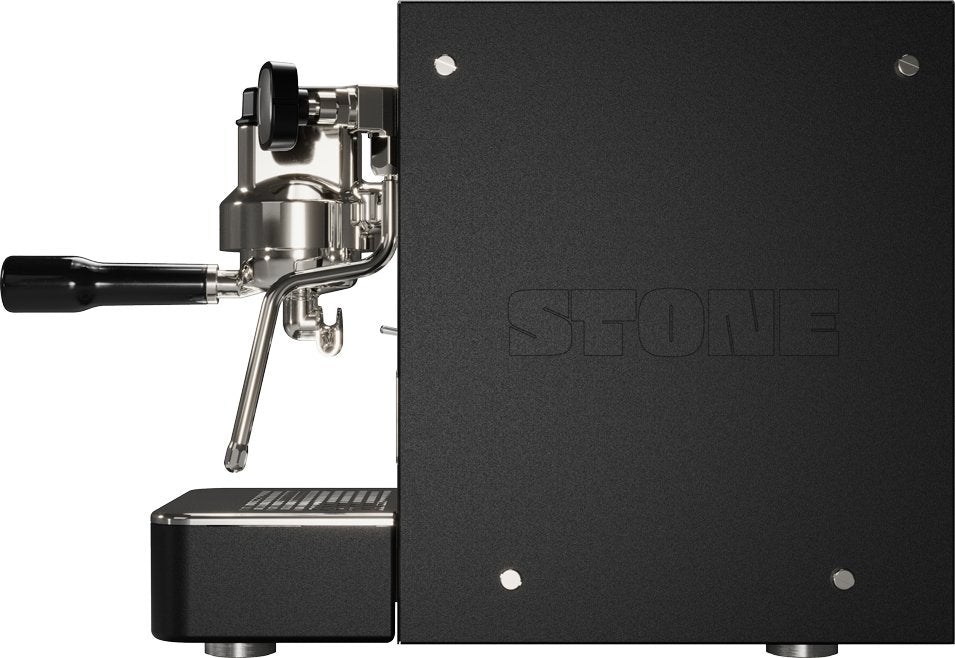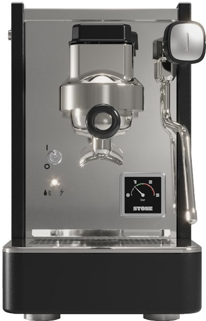 Stone is attacking the espresso machine market with mind-blowing features. With its compact shape, it is designed for people who want to save counter space in their kitchen. Its small size remains packed with performance. It attaches to a 58mm portafilter, the barista standard (this is the measure we use at our coffee shop). It is also the machine with one boiler and one heating unit with one of the smallest volumes in our entire collection.